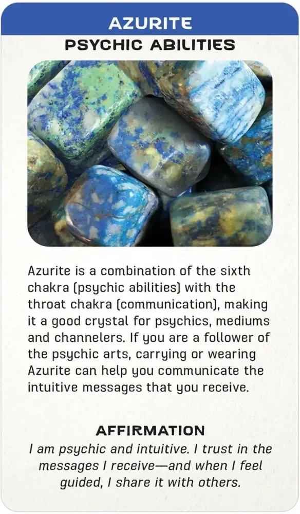 Each crystal message card features a photo of the crystal, a description of its meaning and benefits, and a powerful affirmation. You may pick a single card to receive a crystal message for the day or use the cards as an oracle deck for insight and guidance about a situation.